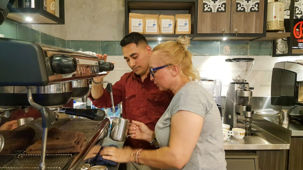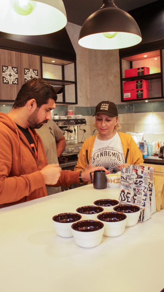 We are developing our products in our coffee lab where we test the green coffee, develop our blends for and conduct cupping until we reach the final products. In cooperation with Basca coffee academy we welcome coffee roasting trainees to have in virtual training at our roasting facility to have a real experience of the daily roasting work.